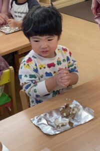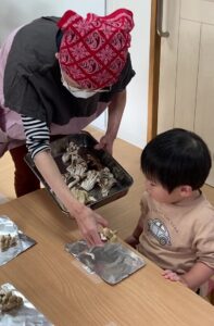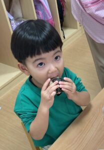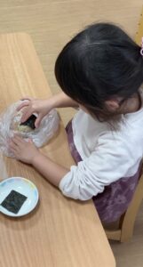 袋の上からにぎにぎにぎ🍙海苔も上手に貼れました!