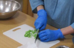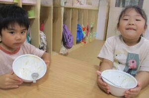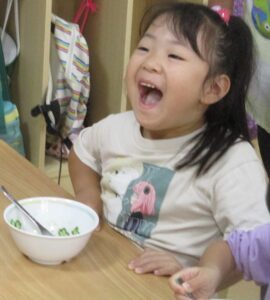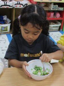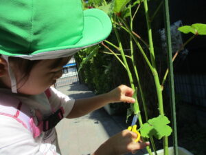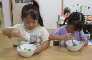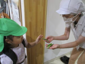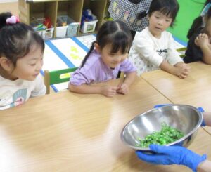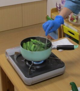 うさぎクラスで栽培・収穫したオクラを使って食育を行ないました。